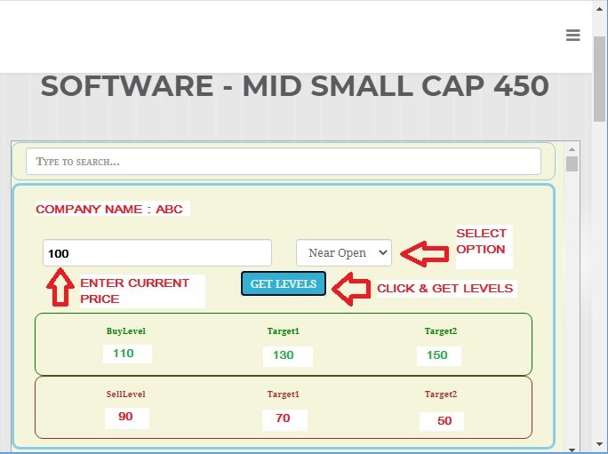 Trader puts current price of 100 in software and software gives Buy Level with it’s targets and sell Level with it’s targets as follows with their respective targets.