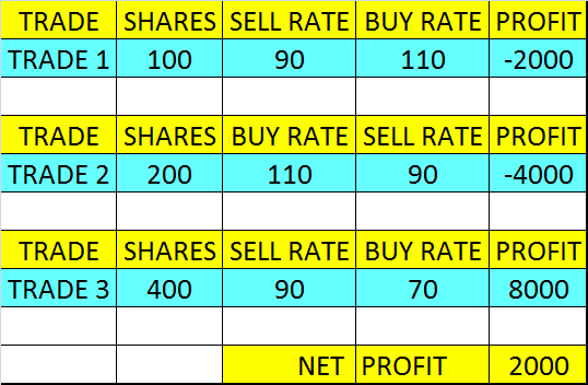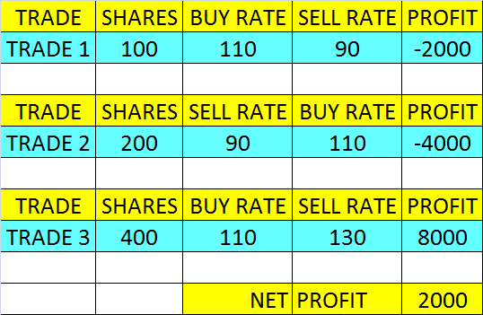 Second trade – sell 300 shares = profit 4000